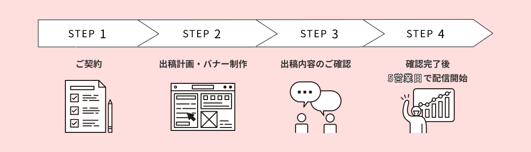 - 広告配信開始:ご確認完了後、5営業日で配信開始いたします。